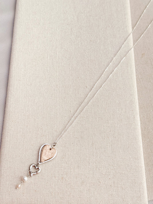 24-4770 Gracie Rose Matte Two Tone Freshwater Pearl Love Hearts Necklace