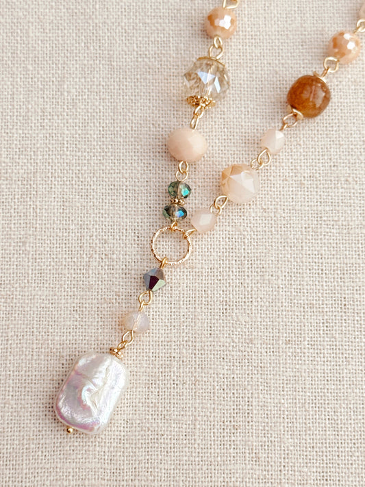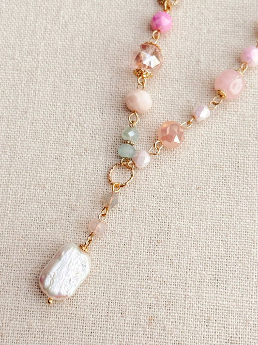 8-9298 Gracie Rose Crystal & Semi-Precious Beaded Necklace with Freshwater Pearl Drop