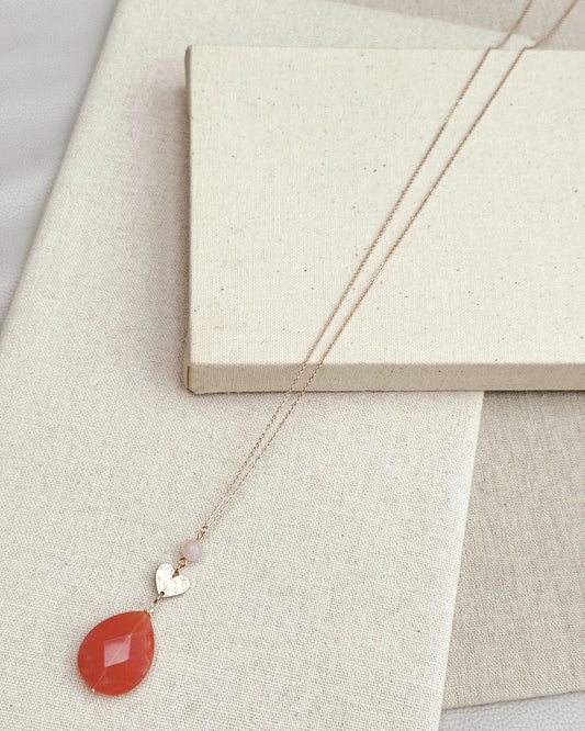 8-3274 Gracie Rose Rose Quartz & Cherry Quartz Teardrop Necklace – Gold Gemstone Pendant