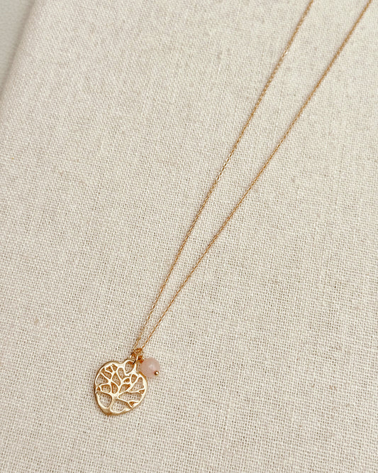 33-99747 Gracie Rose Rose Quartz Tree of Life Heart Charm Necklace
