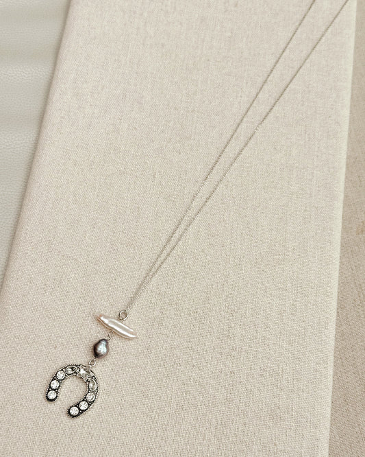 24-8783 Gracie Rose Lucky Horseshoe Keshi Pearl Necklace Silver