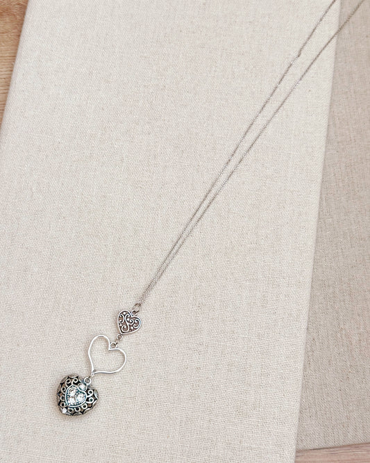 8-8231 Gracie Rose Silver Triple Heart Pendant Long Necklace