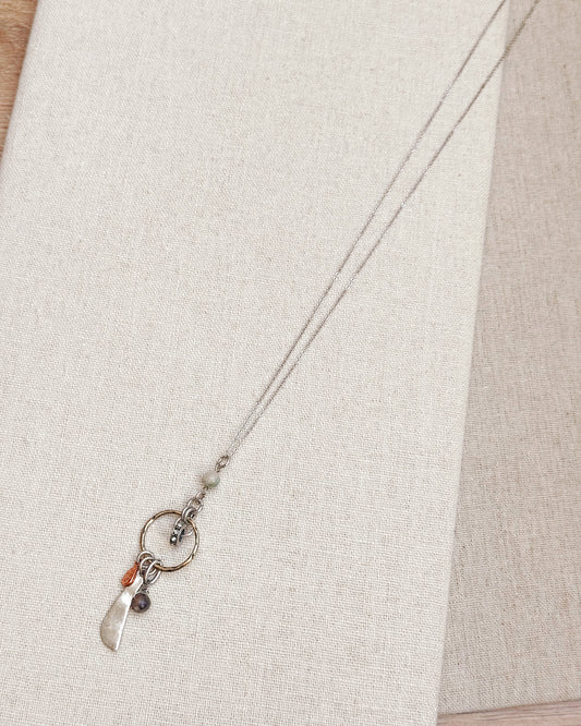 24-3372 Gracie Rose Antique Two Tone Semi-Precious Cluster Pendant Necklace